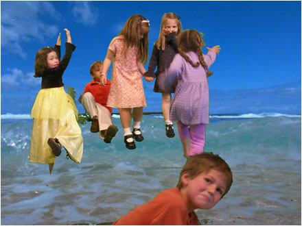 run around on a green playstructure. Look as if you are flying, swimming, or